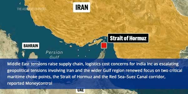 Middle East tensions raise supply chain, logistics cost concerns for India Inc as escalating geopolitical tensions involving Iran and the wider Gulf region renewed focus on two critical maritime choke points, the Strait of Hormuz and the Red Sea–Suez Canal corridor, reported Moneycontrol. Concerns about a full closure of the Strait of Hormuz largely centre on oil prices and energy security, but recent disruptions have demonstrated that even limited threats or security incidents along major sea routes can quickly lead to higher freight rates, longer shipping timelines and increased working capital pressure for exporters and importers.“Foreign trade may be affected by increased freight and insurance costs, though India’s diversified trade relationships could help mitigate some of the impact,” said Mr. Manoranjan Sharma, Chief Economist at Infomerics Ratings. He added that energy intensive sectors such as aviation, logistics, paints and chemicals are likely to face margin pressure due to rising input costs, while upstream oil producers could benefit from stronger crude prices.