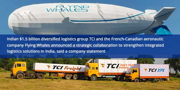 Indian $1.5 billion diversified logistics group TCI and the French-Canadian aeronautic company Flying Whales announced a strategic collaboration to strengthen integrated logistics solutions in India, said a company statement. On the occasion of the official summit between the President of the French Republic, Emmanuel Macron, and Prime Minister Narendra Modi, TCI and Flying Whales signed the MoU in the presence of Mr. Vineet Agarwal, Managing Director, and Mr. Rajkiran Kanagala, Chief Business Officer, Transport Corporation of India and Mr. Sébastien Bougon, President of Flying Whales and President of Flying Whales operation subsidiary. Flying Whales is developing the LCA60T aeronautical program, a rigid cargo airship with a large payload capacity of 60 tons. The LCA60T has the unique ability to load and deliver its cargo in stationary flight. It will decarbonize transportation of goods, including heavy or bulky loads, and explore new and develop existing logistics, infrastructure and supply chain solutions in India, with a specific focus on enabling high-value and mission-critical programs, said the statement.
