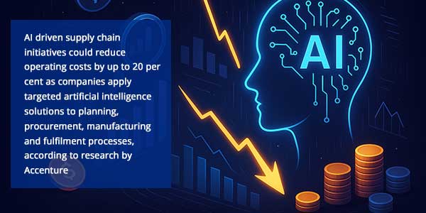 AI driven supply chain initiatives could reduce operating costs by up to 20 per cent as companies apply targeted artificial intelligence solutions to planning, procurement, manufacturing and fulfilment processes, according to research by Accenture. Accenture’s report titled “Making Self-Funding Supply Chains Real” found that organisations are increasingly using focused AI interventions to address the largest cost drivers across supply chain operations, generating early savings that can be reinvested to build more resilient and autonomous systems over time.“Supply chain leaders are forced to pursue two goals at once: cut costs faster and build resilience for what’s next. But sweeping transformation is hard to fund. What we’re seeing is a shift toward focused, AI powered actions that generate savings early on, and companies using those savings to build more autonomous, resilient supply chains in the long run,” said Ms. Patricia Riedl, Supply Chain and Operations Lead, Americas at Accenture.The research indicates that such interventions can reduce operational expenditure by up to 24 per cent and cut manual interventions by as much as 50 per cent as autonomous systems expand. Overall supply chain costs could fall by up to 20 per cent depending on the level of automation adopted.