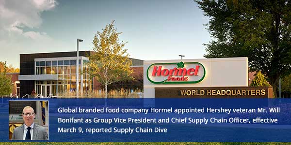 Global branded food company Hormel appointed Hershey veteran Mr. Will Bonifant as Group Vice President and Chief Supply Chain Officer, effective March 9, reported Supply Chain Dive. Mr. Bonifant will oversee Hormel Foods’ global supply chain operations, including procurement, manufacturing, planning, logistics and engineering, the company said in a Feb. 12 announcement. His appointment comes as the company seeks to strengthen operational capabilities and support its long-term strategic priorities.“Will is a proven supply chain leader who has scaled complex operations and built modern capabilities across global networks,” said Mr. John Ghingo, President of Hormel Foods. Mr. Bonifant joins the role after more than 15 years at Hershey, where he most recently served as Vice President of Manufacturing, Engineering and Supply Chain Strategy. In that position, he oversaw about 20 manufacturing plants supporting the company’s North America confection and salty snacks businesses.