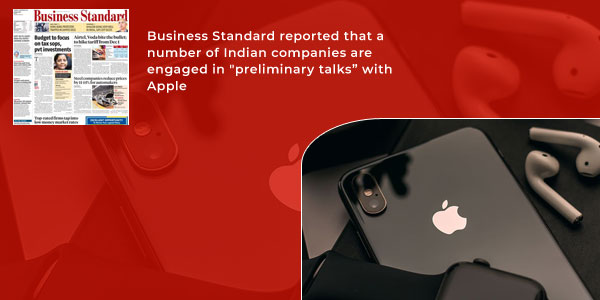 Business Standard reported that a number of Indian companies are engaged in "preliminary talks" with Apple to explore supply chain integration with the iPhone maker for making the phone's components and other Apple products in India as well as globally. As per the paper, these companies include leading automotive, auto components, and electronics manufacturing companies.