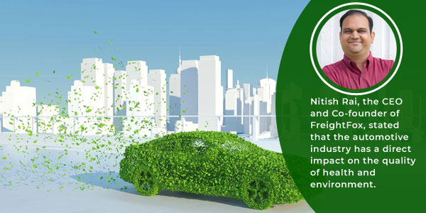 Writing for the Financial Express, Nitish Rai, the CEO and Co-founder of FreightFox, stated that the automotive industry has a direct impact on the quality of health and environment. Mr. Rai noted that the Indian manufacturing and supply chain industry can boost green logistics by encouraging a modal shift from road-based transportation to more energy-efficient alternatives such as railways, inland waterways, and coastal shipping.